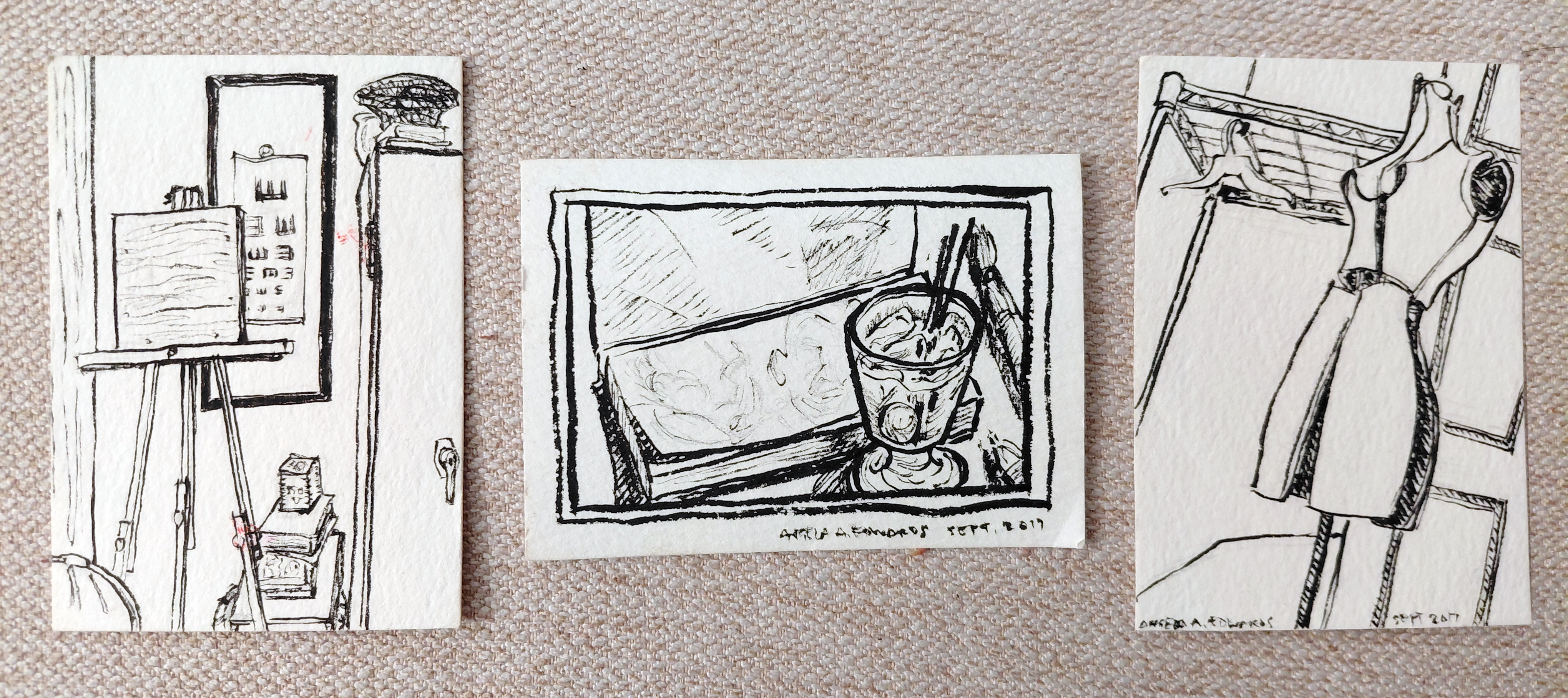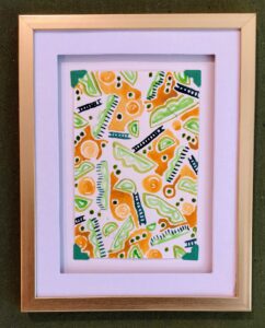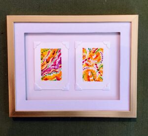 Left: “The Way The River Flows”, Right: “Circus In Treetop Grove”; 9.5″ x 7.5″ framed